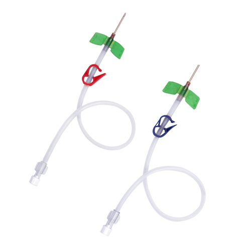 To connect blood lines of the blood vessels through needles when dialysis is carried out through an internal fistula. Back eye needle to minimize interruption of blood flow. Siliconised ultra thin walled & sharp beveled needle to minimize trauma to the patient.