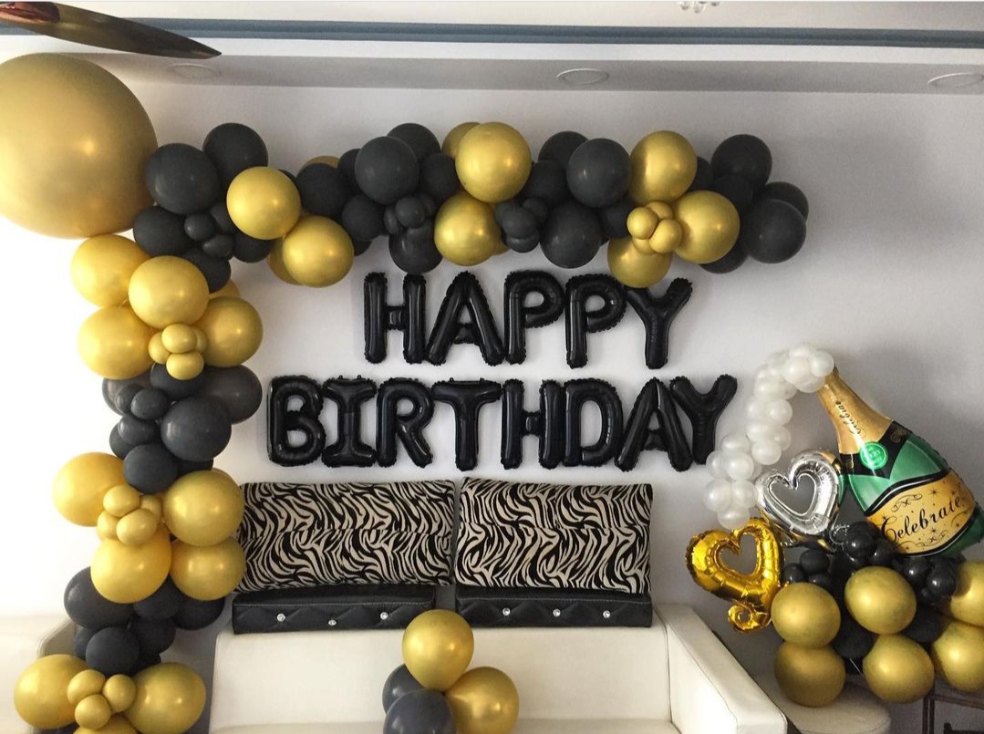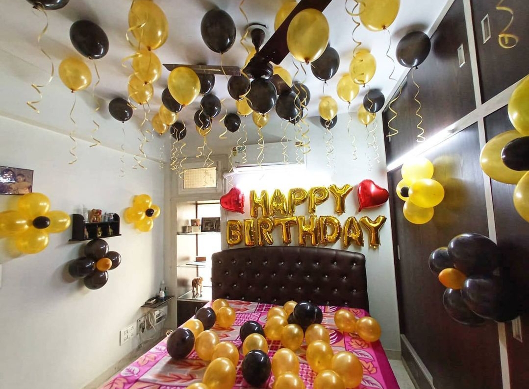 birthday room decoration yelloow black balloons combo