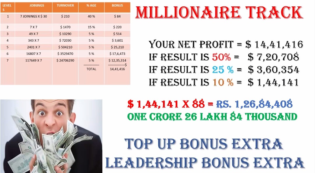 (3) गिफ्ट इन्कम के रूप में (10%)स्वतः आरम्भ से सुरक्षित होता जाता है जो टीम न बना पाने की स्थिति में एसोशियेटस को अपनी रकम की दोगुनी होने पर यथावत लाभ मिल जाता है। काम करना है तो क्राउन के लिए काम करें जहां असीमित लाभ है।और एसोशियेटस बनने के लिए मात्र 30$+गैस फीस जो लगभग (3000)तीन हजार रूपए है और ट्रस्ट वालेट अथवा मेटा मास्क वालेट से एसोशियेटस बन सकते हैं मेरा स्पॉन्सर आई डी है।सहायतार्थ सम्पर्क करें 9835414757 https://onenessglobal.io/register?ref=468