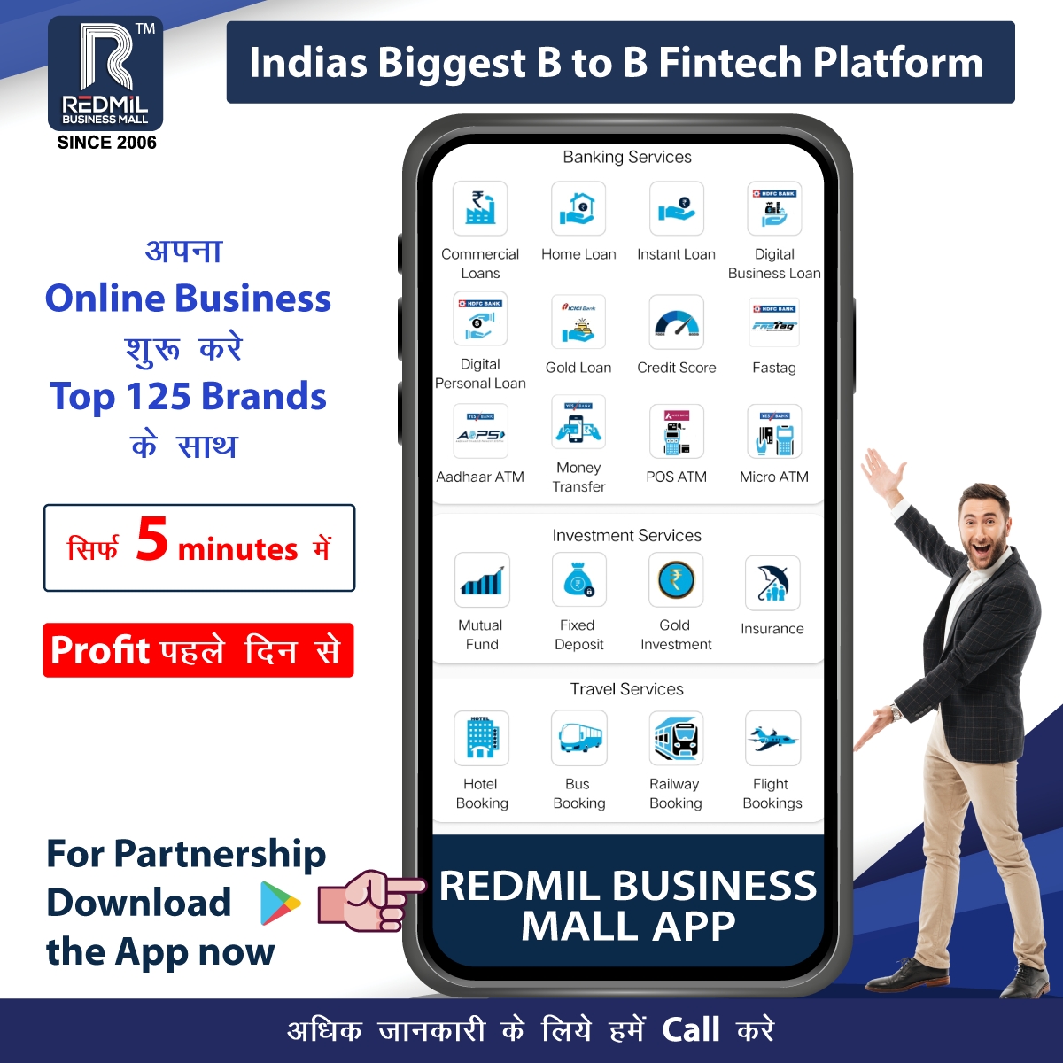 Redmil Business Mall is B2B2C platform for Retailers and Agents, providing 25+ services with national and international collaboration with 125+ Brands